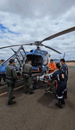 Após ser atendido no local do acidente, o paciente foi transportado para a Santa Casa de Montes Claros pelo do helicóptero da Polícia Militar, juntamente, com a equipe do SAMU que integra o Suporte Aéreo Avançado de Vida (SAAV).